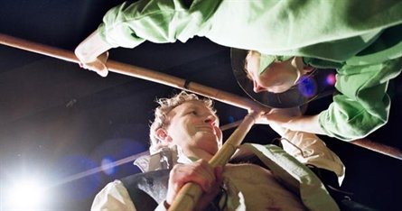 De fægter og slås med stokke, kårder og sværd, så publikum jubler – og de kysser, så der skriges i frydefuld afsky.