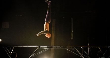 Et virvar af gamle bildæk, træstumper, store bolde og en gevaldig trampolin fylder scenen. Ud af ødelæggelsen og ruinerne træder de tre performere, som med ekstrem fysik, rå energi og brutale bevægelser skaber et humoristisk og skævt drømmeunivers. Tag med til glittede Las Vegas, mød Michelin-manden og den kejtede cowboy, og mærk suget i maven, når de tre artister udfører halsbrækkende stunts med førligheden som indsats.