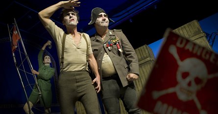 I samarbejde med det russiske klovnekompagni Licidei har vi skabt en skarpladt og grotesk komedie uden ord. En anderledes klovneforestilling for voksne om at være et land i krig.