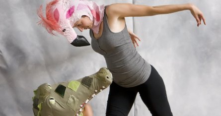 Forestillingens to dansere udforsker, hvad rytme og beklædning gør ved kroppen, og tosser og tumler sig gennem alle mulige sammensætninger. De ”bladrer” igennem hoved, mave og ben på forskellige figurer, ligesom i flip-flapbøgerne, og sære kombinationer opstår. Det ser skørt ud med flamingo-hoved, krokodille-mave og boogie-ben i gummi-støvler!