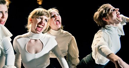 Massernes natur udforskes i værket Mass Hysteria.Hvad får millioner til at græde over diktatoren Kim Jong Il’s død, og hvorfor hujer og hærger hooligans i takt.