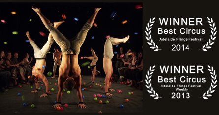 Med et sjældent set overskud viser performerne en perlerække af legende, festlige akrobatiske tricks, uden at bruge andet end deres veltrimmede kroppe. Publikum sidder i åndeløs spænding under hele showet, der præsenteres så intimt, at man kan mærke varmen og høre hvert åndedrag. Nycirkus skåret helt ind til benet. Råt, heftigt og delikat. Oplev kompagniets danmarkspremiere med hele 7 artister og 1 musiker på den specialbyggede scene.