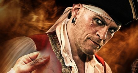 anfører John Silver – forklædt som skibskok. Et spændende kapløb om skatten er sat i gang.
