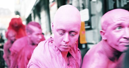The Invasion er ikke en typisk teaterforestilling. Det er en leg, en bevægelse, en pink virus der spreder sig over hele jorden og inviterer alle til at være med.
