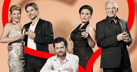En festforestilling med fyldte drinksglas i musikalsk selskab med Preben Kristensen, Betty Glosted, David Owe, Charlotte Guldberg og Peter Pilegaard.