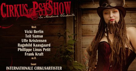 Men på dagen for brylluppet ankommer to fremmede; en klovn og en prinsesse, som ingen tidligere har hørt om…“Cirkus PsyShow – En morderisk Vaudeville” er en eventyrlig og morderisk forestilling med humor, musik og imponerende cirkuskunster – med danske Vicki Berlin i rollen som den onde klovn Beezzle og den canadiske burlequeske-dronning og cirkusartist BonBon Bombay