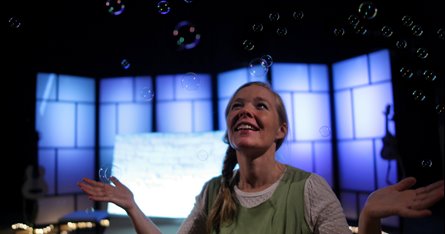 1-2-3-nU... er en forestilling med fokus på sang, musik, bevægelse og interaktion.