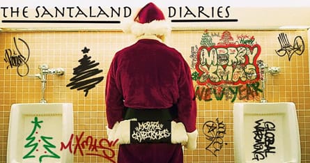 The Santaland Diaries is a brilliant evocation of what a slacker's Christmas must feel like. Out of work, our slacker decides to become a Macy's elf during the holiday crunch. At first the job is simply humiliating, but once the thousands of visitors start pouring through Santa's workshop, he becomes battle-weary and bitter. Finding consolation in the fact that some of the other elves were television extras on One Life to Live, he grins and bears it, occasionally taking out his frustrations on the children and parents alike. When a new Santa arrives at the workshop, things seem to be different, but will our slacker be able to find the gay Christmas spirit before his employment runs out?