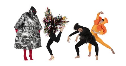 Børn og barnlige sjæle kan glæde sig til en sjov og anderledes danseforestilling med finurlige karakterer i knitrende, raslende og kling-klangende lydkostumer.