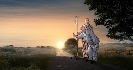 Peter Schrøder og Kurt Ravn spiller to ældre herrer, som nægter at give op, selvom det egentlig er for sent. De er indlagt på hospitalet med hver sin terminale sygdom. Der er de dog ikke længe, før de beslutter sig for, at de ikke bare vil ligge og vente på døden. Så de griber dagen og flygter. Med dropstativ og iklædt pyjamas stiller de sig op ved den nærmeste landevej og blaffer; klar til nye - sidste - eventyr.