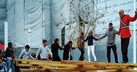 At løbe risici farver vores liv og giver det saft og kraft. Gennem denne publikumsinddragende forestilling får deltagerne en fornemmelse af kilderne til velbehag og ubehag. En gruppe, hvor medlemmerne tuner sig ind på hinanden, vil kunne klare forhindringer sammen. Den kollektive oplevelse af fare er ekstremt kraftfuld og vækker dybe spørgsmål: Kan vi stole på hinanden og beslutte os for en fælles indsats mod et problem? Kan vi alle være leder af gruppen? Kom, og vær med i et show, hvor du kan være en af deltagerne og måske en af heltene!
