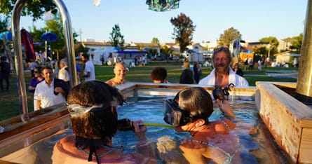 Kom, og vær med i det midlertidige resort udendørs i byens centrum. Alle er velkomne. Ved at bruge vand som ledesnor forvandler Bains Publics velvære til en politisk handling og territoriet til et rum for relationer. Hvorfor forsøge at forklare med ord, hvad der kan forklares med et knus og en hammam? Alle er inviteret til at lade sig synke ned i det blide vand og deltage i 3615 Dakotas filosofiske og humoristiske univers.