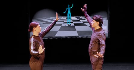 It's Cold and There's No Music er et poetisk værk om robotter, ensomhed og vores behov for komfort i en verden, vi ikke ved hvor er på vej hen. To dansere på scenen bruger en motion-capture dragt til at interagere med en animeret kunstig intelligens. Dragtens data livestreames og projekteres, og danserne skiftes til at være den, snakke med den og forklare den, hvad det betyder at være menneske. Sammen skaber de en hyldest til det, der ikke kan forklares og som vi først rigtigt kender, når vi mister det.