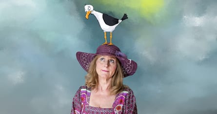 En fin dame skal på ferie i et flot sommerhus ved et smukt hav. Hun glæder sig til roen og udsigten og den lækre mad på den gode restaurant. Men det bliver slet ikke, som hun havde regnet med. Sommerhuset viser sig at være en utæt gammel fiskerhytte, og den er allerede beboet. Af en måge. Så ro og renlighed er der ikke meget af, og ferien bliver helt anderledes end forventet. Men det er måske slet ikke så dårligt...