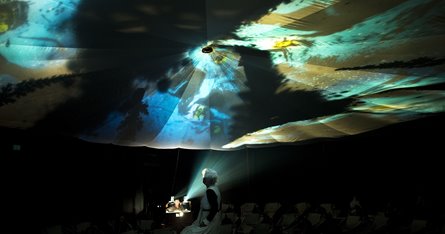 Publikum ligger i hængekøjer under en strålende himmel og hører og ser og mærker denne vidunderlige gamle, mystiske legende.