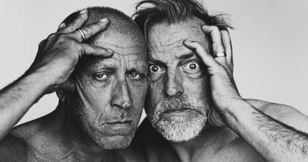 De to halvgamle mænd er: Henrik Ipsen og Simon Vagn Jensen - stærkt inspireret af Bjarne Schilling og Gorm Vølvers bog, ”Den store håndbog for halvgamle mænd"