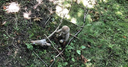 ”Spor – en togrejse til fods” tager udgangspunkt i den gamle jernbanestrækning mellem Klemensker og Rø, hvor toget for længst er holdt op med køre. Hvor jernspor og damp pløjede sig igennem klipper og skovterræn er mennesker nu kun gæster i et kulturlandskab, hvor naturen har fået mulighed for at gøre krav på området igen. Nu har du mulighed for at tage på en rejse i den lokale historie tilbage til fortiden, mytologien og naturen – og hjem igen. Måske hører du et spøgelsesagtigt tog passere, mens du rejser til fods på den korte strækning fyldt med landskabsrelaterende oplevelser: Spor af spor – dyr som damptog – kridtet op hér og dér på stien, lokalhistorien formidlet af “togkonduktøren”.