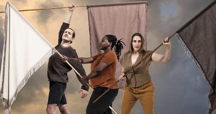 I Koncertkirken på Nørrebro møder publikum tre udsendte væbnet med bannere, symboler, fanfarer og overbevisninger. De er kommet for at hjælpe os til en ny begyndelse uden tidens konflikter og problemer. Men hvordan frigør vi os fra indgroede mønstre og eksisterende holdninger og værdier?