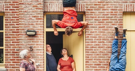 Follow Me er den første produktion af Be Flat. Et akrobatisk show der tilpasses hver enkel placering - en kontinuerlig tilpasningsproces, hvor omgivelserne er den afgørende faktor.