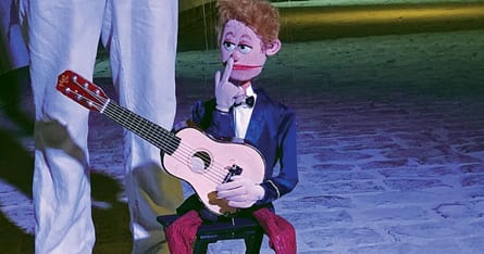 Marionetdukken Mr. Barti er en dygtig musiker – og en endnu bedre performer! Han kan spille, synge og danse, og tryllebinder sit publikum, som han elsker at pjatte og flirte med. Dukkefører Alex Mihajlovski holder styr på flere end 40 strenge, selvom den habitklædte charmetrold vist hellere vil klare det hele selv. Der er nemlig ingen bånd, der skal binde ham!