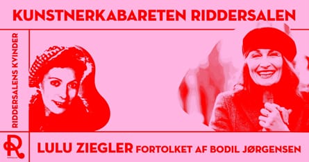 Riddersalen har været hjemsted for nogle af byens mest markante kvindelige kunstnere gennem tiden. Fire søndage i foråret præsenterer vi nogle af dem i Kunstnerkabareten Riddersalen. Bodil Jørgensen fortolker en håndfuld af Lulu Zieglers sange m. pianist Bjarne Sahl. Rikke Rottensten fortæller om Lulu Ziegler på Riddersalen og Kunstnerkabaretens leder Mette K. Madsen samtaler med Bodil Jørgensen om arbejdet med Lulu Zieglers sange. Præsenteres i samarbejde med AOF Storkøbenhavn/FRB. og Frederiksbergmuseerne.