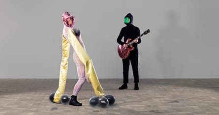 En danser i et fabulerende kostume og en guitarists improviserende toner, skaber en levende skulptur, der forvandler kønnede stereotyper. I konstant foranderlighed udfordrer og former de hvad vi ser. En krop svæver igennem kønnede signaler og giver glimtvise fornemmelser af noget, der synes udpræget feminint, udpræget maskulint eller noget, der synes svært definerbart. En stor muskel, der buler ud på benet, en hofte, der giver et ekstra spjæt og et menneske, der svinger imellem at være sårbart og stolt. Kropskøn er en fysisk og musikalsk collage, der leger med de kønsroller og mønstre vi selv er med til at fastholde og skabe - måske uden at ville det?