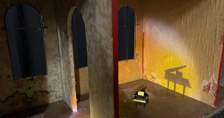 Rummene i dukkehusene transformeres fra lille til stor skala, så de kan fylde hele scenen. Forskellige tider, forskellige virkeligheder. Historie og historiefortælling. I harmoni og disharmoni, magisk realisme og utopi i et poetisk univers.