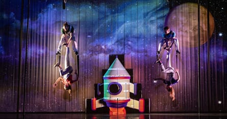 Børn fra 3 år, ældre søskende, forældre og bedsteforældre kan alle nyde dette magiske rumeventyr, hvor fem fantasifulde og frygtløse artister, drømmer om den ultimative rejse til månen.