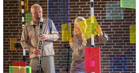 Musikken og scenografien er en fest af opfindelser som tager os med ind i musikkens og fantasiens verden, hvor man kan drømme sig til en solopgang eller en skov, en vandpyt eller en fugleflok, se sig selv i en spejling der suser forbi, og blive en af denne koncert for stemme, basklarinet og 40 farvede plexiglasplader.