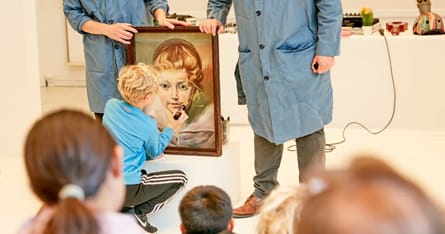 KABOOM – kunsten at ødelægge er en familie forestilling fra 6 år og op, der handler om forholdet mellem destruktion og skabelse. Sammen med publikum undersøger vi den forbudte glæde ved ødelæggelse igennem at smadre ting sammen med dem på scenen. Vi fortæller om værker fra kunsthistorien, hvor destruktion er den skabende kraft. Vi knaser bolsjer, smadrer guitarer og fodrer en kødhakker med gamle bøger for at lave pølser af dem.