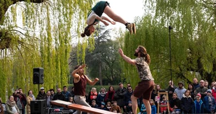 Jongleren med bordtennisbolde fra mund til mund. Svimlende spring på et vippebræt. Kroppe der gribes og drejes. ’Encore une fois’ betyder endnu engang og er en akrobatisk leg mellem tre artister, der giver hinanden lov til at fejle. For i denne forestilling behøver intet at være perfekt, her må man gerne begå fejl. For så kan man nemlig starte forfra og gøre det hele én gang til. Gentagelser, variationer, risiko, kontrol. Legende fare eller farlig leg? Forestillingen er skabt af det unge, spansk-græske kollektiv Tripotes la Compagnie, som har base i Bruxelles. Trioen er kendt for sin finurlige, poetiske leg med objekter og sin nyskabende, mesterlige akrobatik.