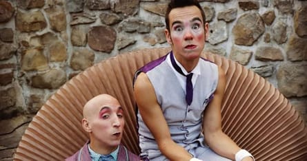 Caricatos er en varm, subtil og elegant forestilling, der uden ord fokuserer på kommunikationen med publikum. Det er en improviseret duel mellem to indtagende klovne, der nemt kalder latteren frem. Uden sprog må de hver især bruge kroppen eller fagter som våben. Inspirationen til Caricatos kommer fra historiens største klovne og stumfilmsstjerner, fra Buster Keaton til Bill Irwin. Med afsæt i pantomime, slapstick og humor tilføjes nye kunstneriske udtryk til den klassiske klovne-figur. La Belle École er dannet af de to komikere Hugo Miró og Samuel Penhastro, der begge har en lang international karriere bag sig. Caricatos er La Belle Écoles første forestilling.