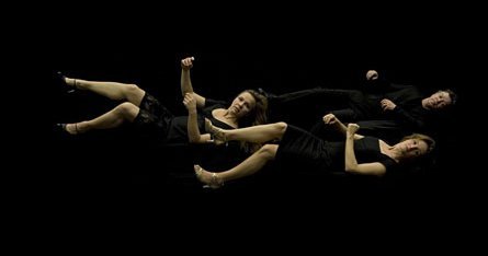 Midt på scenen svæver tre mennesker i lav højde over jordens overflade. Hvad foregår der?