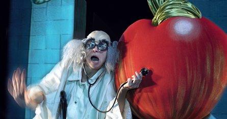 Stykket foregår i en scenografi af levende billeder, der blander teater og tegnefilm