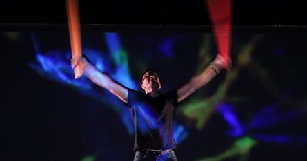 Musik og fysisk aktion smelter sammen med computer grafik og live video i et fantastifuldt og farverigt univers.