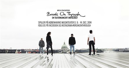 “The light that burns twice as bright, burns half as long”, siges det – men kan ilden overhovedet dø? Janis Joplin, Jimi Hendrix, Jim Morrison og Kurt Cobain. – genopstår på scenen, som musikere, som mennesker og som de myter de var og stadig er! De hænger på væggen, og deres musik giver stadig genlyd i utallige stuer verden over. De er blevet globale ikoner. Men hvad var prisen? Vi trækker scenetæppet fra, vækker legenderne og kigger tilbage på nogle af rock historiens mest tragiske skæbner, der blev ofre for deres egen succes og mistede herredømmet over deres liv. Velkommen til BREAK ON THROUGH; en forestilling hvor teater og musik mødes, hylder, undersøger og vejer “The Forever 27 Club”.