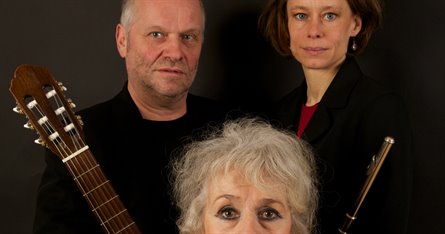 På bordet foran hende står en æske med breve, avisklip og nodeark. Samt et slidt eksemplar af Carl Nielsens erindringer.
