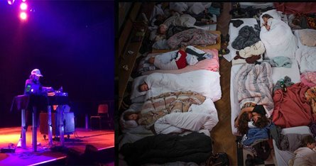 Cavemusic er et eksperimentelt ritual, et kropsligt eventyr med en kollektiv fornemmelse, hvor publikum forpligter sig til tre enkle regler: *Vær vandret* du lægger dig ned. Vi lægger os sammen. Kroppen synker ned i underlaget. Vi bliver nærværende og mærker egen og de andres tilstedeværelse i rummet. *Gør sig det behageligt* vi bliver komfortable. Vi er vidner til at vores kroppe lytter til den rytme, der udfolder sig. *Vær stille* det som startede som en baggrundslyd bliver gradvist højere og fylder vores øre, hoved, hele kroppen. Du giver slip. Vi slipper sammen.