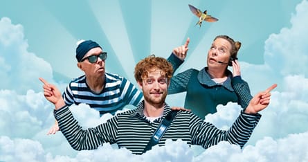 Der er meget, man kan være bange for. Jens lever sit ensomme voksenliv med livrem og seler, redningsvest og faldskærm. Han savner nogen til at tage sig af sig. Han savner sin mor og far. Men en dag besøger han dem i himlen, hvor de tager ham ud på en overraskende rejse, og han får et helt nyt syn på livet med hjem.