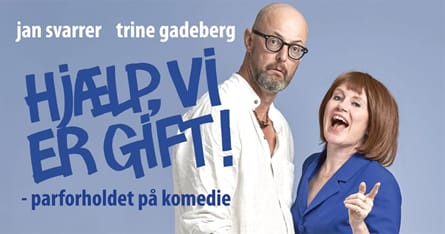 Urkomisk forestilling og satire over det “moderne parforhold” og samlivseksperterne, der står klar til at hjælpe når det går galt. Parterapeuterne Anne-Lene og Torben Lydiksen (gift på 32.år), turnerer landet rundt med deres foredrag “Hjælp, vi er gift!” med råd til hvordan man kommer videre, hvis samlivet er gået i stå.? Ægteparret ser sig selv som eksperter men er desværre løbet ind i problemer forud for dagens optræden. Som aftenen skrider frem stiger stressniveauet på scenen og de får mere end svært ved at leve op til deres egne fine ord. Alle forsøg på at skjule uenighederne falder til jorden i takt med at skeletterne vælter ud af (ægte)skabet. Stærkt underholdende og lige lovlig ærligt