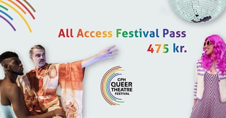 Please join us for our exciting CPH Queer Theatre Festival programme, where we will be presenting presenting a variety of international queer theatre performances ranging from an australian cabaret created by Moira Finucane, a hilarious ensemble comedy by Neil Labute, a naked solo performance, a staged reading of The Normal Heart by Andrew Keates, pop-op premieres, panel debates, artist gatherings and a unique opportunity to get up close and personal with the artistic process. With your festival pass you have unlimited access to as many shows as you please.