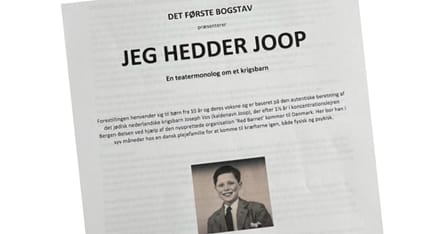 Jeg hedder Joop er en autentisk historie om et krigsbarn, fortalt for børn fra 10 år og op. Joop Vos’ personlige erindringer – optegnet gennem en serie af længere interviews - bliver i forestillingen til en bevægende historie om et krigsbarn fra dengang fortalt for børn fra nu. Hvordan var det for Joop dengang i 1945 og hvad betyder det at vokse op i krig, blive fordrevet fra hus og hjem, deporteret til en lejr uden at vide, om det er for kort eller lang tid? Kan nutidens børn forestille sig hvordan det ville være at vokse op under sådanne barske omstændigheder – eller at åbne familiens hus og dele ens soveværelse med et fremmet barn?